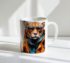 Questa tigre audace ed elegante, che sfoggia occhiali da sole riflettenti su uno sfondo a scacchiera vintage, conferisce un atteggiamento feroce e un tocco moderno a qualsiasi spazio. Un mix perfetto di energia selvaggia e disinvoltura.