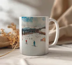 Allegri sciatori sfrecciano su una pista innevata, passando accanto ad accoglienti rifugi di montagna circondati da abeti innevati e montagne imponenti. L'immagine cattura l'idillio invernale, la magia delle montagne e la gioia degli sport invernali. Una scena suggestiva che riflette il fascino di una vacanza sulle Alpi e il calore di una comunità invernale.