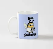 Una simpatica ape in camice e occhiali tiene in mano due provette piene di pozioni colorate. L'illustrazione gioca sul gioco di parole "Bee Scientist", unendo scienza e simpatia in un'unica immagine. Perfetto per chi ama la biologia, la chimica o semplicemente le api con un look da scienziato!