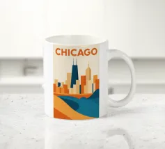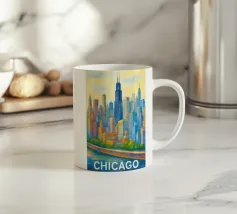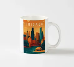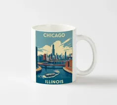 Questo poster mostra l'imponente skyline di Chicago nel caratteristico stile lino print, con la dominante Willis Tower al centro e il lago Michigan in primo piano. Perfetto per gli amanti dell'architettura americana, dell'estetica dello skyline e dei classici poster cittadini. Ideale per soggiorni, uffici o pareti creative dal sapore urbano.