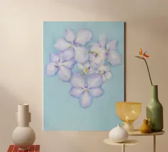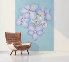 Contrasti morbidi - Le delicate tonalità lilla delle orchidee si stagliano con grazia sullo sfondo azzurro e tranquillo.