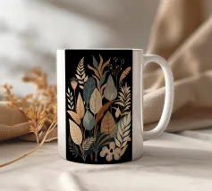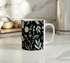 Questa elegante stampa botanica astratta presenta un'armoniosa miscela di foglie e fiori delicati nelle rilassanti tonalità del blu, del verde e del pesca. Il motivo si staglia su uno sfondo nero profondo, creando un'atmosfera sofisticata e rilassante. Perfetto per aggiungere un tocco di natura all'arredamento della vostra casa.