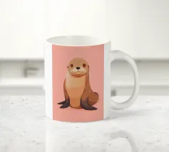 Godetevi una vivace illustrazione della fauna selvatica con una foca felice con il suo piccolo nell'oceano, con pioggia e pesci sullo sfondo.