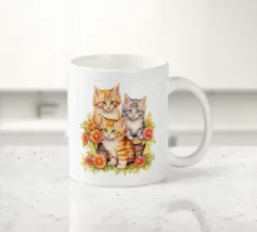 Simpatici gattini con tazze di caffè. Design di Buon Natale