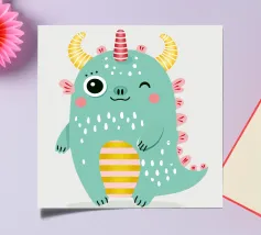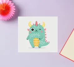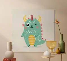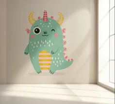 Un simpatico e allegro mostro con corna colorate e dettagli divertenti. Perfetto per i bambini, disegni divertenti e decorazioni colorate che strappano un sorriso.Allegro, moderno e adatto ai bambini con elementi colorati.