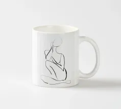 Un semplice disegno al tratto raffigura una persona seduta con i capelli ricci, le braccia avvolte intorno alle ginocchia. Lo stile minimalista utilizza linee morbide e fluide per trasmettere un senso di calma e introspezione.