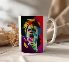 Un ritratto vibrante e geometrico di Sinead O'Connor in stile WPAP, caratterizzato da forme audaci e angolari e da un'impressionante gamma di colori vivaci e contrastanti. L'opera cattura i suoi tratti iconici, come la testa rasata, gli occhi penetranti e la forte espressione facciale, utilizzando blocchi di colore nitidi e frammentati. La composizione enfatizza la profondità e l'emozione mantenendo l'estetica pop-art cubista distintiva di WPAP, creando un tributo visivamente dinamico e moderno alla leggendaria cantante.