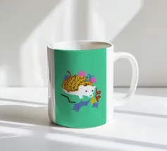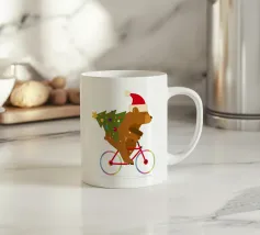 Un simpatico riccio con un cappello da Babbo Natale siede allegramente su una slitta ornata di agrifoglio. Sotto la slitta, la scritta "SLEDGEHOG" aggiunge un tocco giocoso al tema della festa.