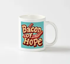 "Bacon of Hope" - uno slogan umoristico che celebra l'amore per il cibo delizioso. In lettere simili a quelle dei cartoni animati, questo slogan spiritoso risplende in blu e arancione e porta un sorriso sui volti degli amanti della colazione!
