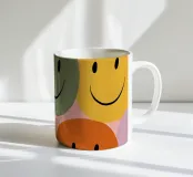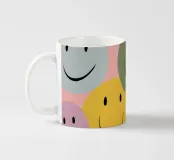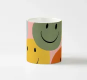 Un allegro disegno di faccine retrò dai colori confetto. Le forme morbide e le linee decise creano immediatamente buone vibrazioni e una giocosa energia pop. Moderno, allegro e adatto all'arredamento dopaminico.