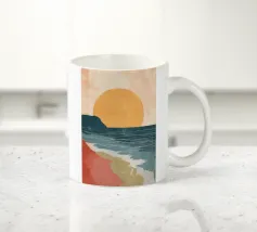 Abbracciate la profonda bellezza della serena solitudine. Questo paesaggio minimalista cattura il momento di quiete in cui il sole bacia l'orizzonte, proiettando una calda luce su un mare tranquillo. Utilizzando forme semplici e una tavolozza di terracotta e blu tenui, questo pezzo è un invito aperto a fermarsi, respirare e trovare un momento di tranquillità in un mondo affollato. È l'opera d'arte perfetta per creare un punto focale calmo e meditativo in salotto, in camera da letto o in qualsiasi altro spazio in cui si cerchi pace e una dolce evasione.