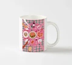 Una vista dall'alto di mani che condividono un grande piatto di spaghetti su una tovaglia a scacchi rossi e bianchi. La scena è una rappresentazione classica, gioiosa e un po' caotica di un pasto comune italiano.