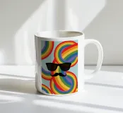 Questo poster presenta un design audace e giocoso con occhiali da sole neri e baffi classici su arcobaleni vibranti e vorticosi. La sua estetica retrò e Pop Art lo rende un pezzo forte, pieno di colore e divertimento. È la decorazione perfetta per aggiungere una dose di personalità e allegria alla sala giochi, al bar o alla camera dei ragazzi.