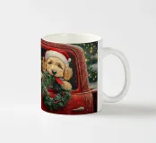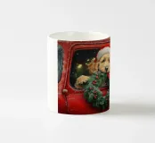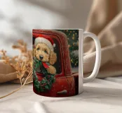 Questo motivo festivo mostra un simpatico cane che indossa un cappello natalizio, seduto su un camion rosso e con in bocca una ghirlanda. I fiocchi di neve e i colori caldi creano un'atmosfera natalizia piena di gioia e nostalgia. Ideale per gli amanti degli animali e del Natale che amano l'arte delle feste e i motivi carini. Perfetto come quadro natalizio, poster per cani, arte natalizia retrò, illustrazione invernale, decorazione natalizia, idea regalo per Natale, arte natalizia nostalgica e decorazione moderna per la casa.