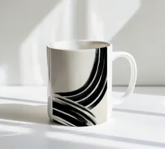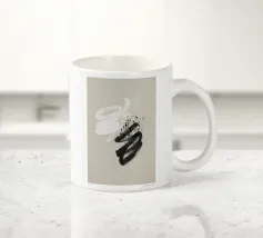 Un'audace e fluida pennellata nera in movimento dinamico su uno sfondo neutro, che evoca semplicità, equilibrio e armonia in una composizione artistica minimalista ispirata alla filosofia Zen.