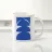 Audaci forme geometriche blu sono disposte verticalmente su uno sfondo bianco. La composizione presenta archi e rettangoli simmetrici che creano un design minimalista e astratto.