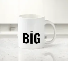 Arte testuale minimalista con slogan motivazionale. Poche parole e tanta verità! Un design che si adatta al motto della vita. PENSARE IN GRANDE. Non vuotare il sacco, vai alla grande.