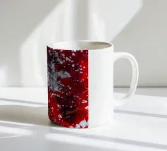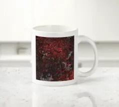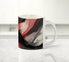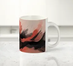 Audaci schizzi di vernice nera e rossa coprono una superficie scura, creando un disegno astratto. I colori contrastanti enfatizzano la consistenza e la profondità, esaltando l'espressione artistica.