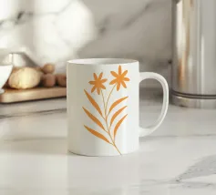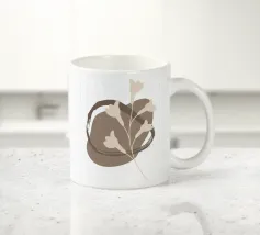 Un semplice disegno a linee marroni rappresenta una pianta con tre rami e piccole forme che ricordano foglie o boccioli. Lo stile minimalista e i colori neutri conferiscono un'atmosfera astratta.