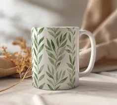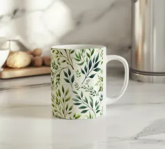 Motivo di foglie semplici acquerellate in verde e bianco