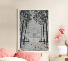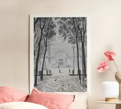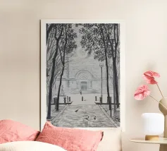 Stampa di un disegno originale di Plaça de la Virreina nel quartiere Gràcia di Barcellona.