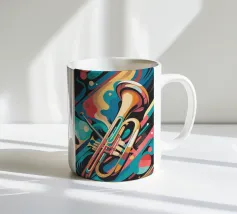 Catturate la bellezza della musica e dell'arte in un unico disegno! Questa illustrazione dettagliata di una tromba presenta dettagli sorprendenti, perfetti per gli amanti della musica e dell'arte.