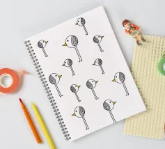 Jeder Vogel startet als schnelle Skizze in meinem Notizbuch, wird anschließend digital verfeinert und mit reduzierten Farben akzentuiert. Das Ergebnis sind fröhliche Grußkarten und Prints, die Minimalismus und verspielten Humor vereinen.