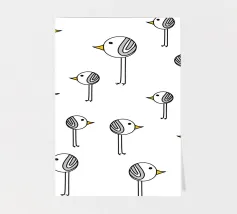 Questo affascinante disegno strappa subito un sorriso con 12 uccelli dalle zampe lunghe, illustrati in modo stravagante. Linee sottili in bianco e nero, piccoli becchi gialli e una dose extra di umorismo rendono il motivo un'attrazione per tutti gli amanti degli uccelli e del design.