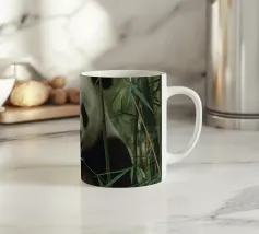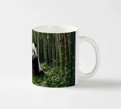 Un grande panda siede comodamente tra alti steli di bambù, godendosi il suo ambiente tranquillo. Il verde crea un'atmosfera tranquilla per questa adorabile creatura.
