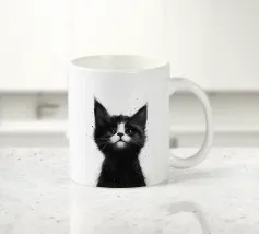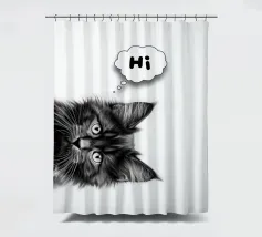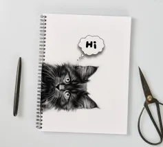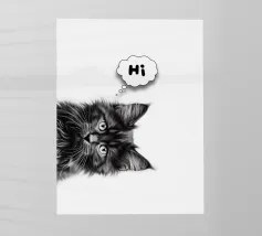 Un simpatico gattino dice "Ciao" in un'illustrazione minimalista, perfetta per gli amanti degli animali. Il suo ritratto in bianco e nero donerà gioia e fascino a qualsiasi parete artistica.