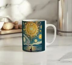 Questa accattivante opera d'arte ritrae una figura solitaria in piedi davanti a un vortice radioso, che mescola blu profondi con una vibrante luce dorata. I tratti pittorici creano un senso ipnotico di movimento e mistero, invitando lo spettatore a un viaggio onirico. Con il suo bagliore atmosferico e l'atmosfera contemplativa, questo disegno si rivolge agli appassionati di paesaggi surreali, arte simbolica e narrazione emotiva. Un pezzo di grande effetto che aggiunge profondità, intrigo e colore agli interni moderni, agli studi creativi o agli spazi di meditazione. Lasciate che la vostra parete racconti una storia di meraviglia.