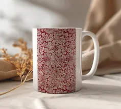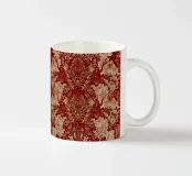 Un elegante motivo damascato vintage caratterizzato da ornati motivi floreali rossi e crema in stile vittoriano con intricati dettagli barocchi.