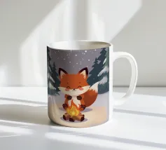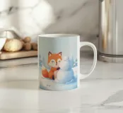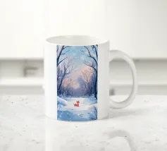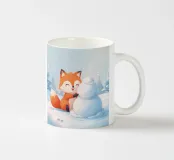 Con un sorriso giocoso, Voxy modella una piccola scultura di neve in una foresta innevata. Il blu tenue, la delicata nevicata e la simpatica energia invernale ne fanno un'illustrazione perfetta per i bambini e gli amanti delle vacanze.