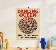 "Feel the beat from the tambourine": questo poster riporta allo spirito degli ABBA e all'estetica degli anni Settanta. Una palla da discoteca stilizzata incontra una tipografia iconica, il tutto in colori retrò. Perfetto per chi ama la nostalgia, la musica e le buone vibrazioni sulla parete. Che si tratti di un salotto, di una sala da musica o di una pista da ballo, questo motivo porterà un tocco di vivacità ai vostri interni. Fa parte di una serie di testi ispirati alla musica retrò.