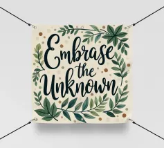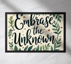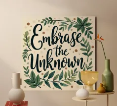Questa opera d'arte vibrante e stimolante cattura l'essenza di abbracciare le incertezze della vita. La tipografia audace e il verde lussureggiante creano un senso di speranza e di avventura, incoraggiando ad affrontare l'ignoto con coraggio e fiducia.