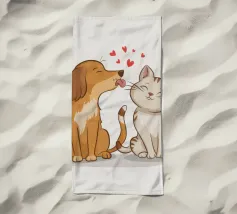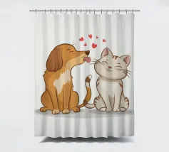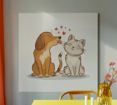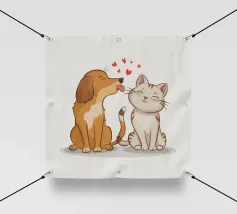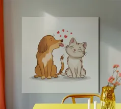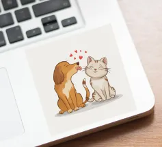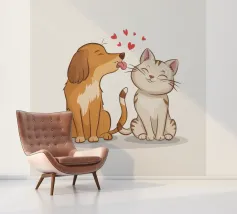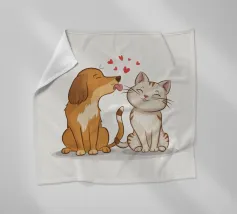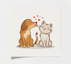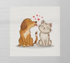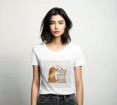 Una donna siede sul pavimento, abbracciata al suo cane e al suo gatto. La scena è una rappresentazione commovente, dolce e bella del potente legame tra una persona e i suoi animali domestici.