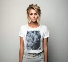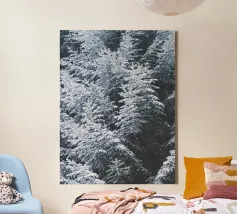 Questo suggestivo motivo mostra abeti fitti e innevati in una tranquilla foresta invernale. Gli intricati dettagli dei rami e l'armonioso strato di neve rendono questo disegno una scelta perfetta per gli amanti della natura. Ideale come murale, tazza, cover per cellulare o cuscino, questo motivo porta in ogni casa l'atmosfera chiara e rilassante delle foreste innevate e la bellezza della natura. Perfetto per gli amanti dell'arte minimalista e ispirata alla natura.
