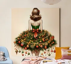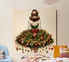 Illustrazione di ragazza in albero di Natale