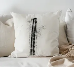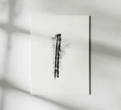 Questa opera d'arte astratta dipinta, caratterizzata da profonde pennellate nere e schizzi di vernice su uno sfondo beige, emana semplicità e modernità. L'immagine digitale è minimalista ed è perfetta per chi apprezza la bellezza semplice.