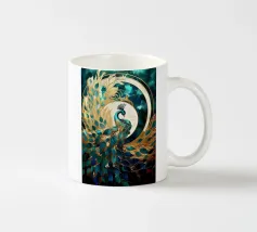 Un'eterea miscela di oro, giada, smeraldo e marmo in questo kintsugi (金継ぎ, falegnameria dorata) astratto: la vibrante resurrezione di un pavone regale.