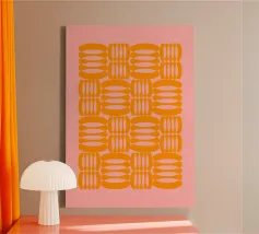 Un accattivante disegno astratto con uno sfondo rosa tenue abbinato a simboli geometrici arancioni. Il gioco di tinte vivaci e forme dinamiche crea un'atmosfera energica e moderna, evocando creatività e auto-espressione. Perfetta per gli spazi contemporanei, quest'opera d'arte aggiunge un tocco di colore e di stile artistico a qualsiasi ambiente. Ideale per gli amanti dell'arte, per gli appassionati di arredamento moderno o per chiunque voglia dare un tocco di classe alla propria casa o al proprio ufficio.