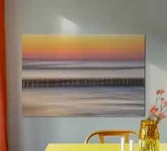Fotografia astratta di un tramonto sulla costa tedesca del Baltico con pennelli sfocati.