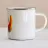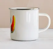 Questo dipinto astratto presenta una forma dinamica e curva che sembra quasi un vortice o un boomerang molto stilizzato. La combinazione di colori è intensa e ricca di contrasti, composta principalmente da toni caldi come il rosso e il giallo acceso sulla destra e da blu freddi (dal blu chiaro al blu intenso) sulla sinistra. I colori fluiscono dolcemente l'uno nell'altro, con pennellate visibili che creano una texture vivace. La forma è isolata al centro sullo sfondo bianco e crea una forte energia visiva grazie al suo movimento e all'intensità dei colori.