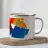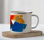 Quest'opera digitale o espressionista astratta presenta una composizione centralizzata a forma di fiore o di sole. È dominata da una tavolozza di arancioni e rossi brillanti nella parte superiore e di blu intensi in quella inferiore, che si incontrano in un centro scuro, quasi nero. Lo stile è caratterizzato dalla frammentazione, con una texture che ricorda i mosaici spezzati o le pennellate grezze. I bordi duri e la disposizione esplosiva creano una forte dinamica ed energia sullo sfondo bianco puro. L'immagine è intensa e fortemente astratta.