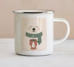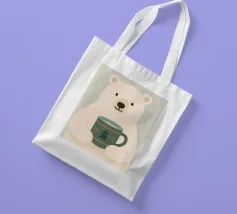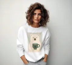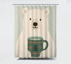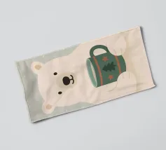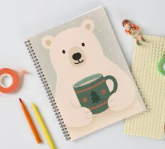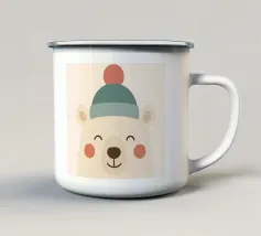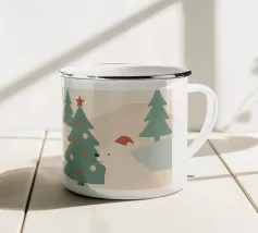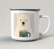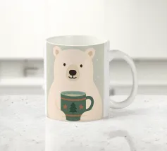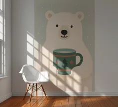 Una calda e delicata illustrazione invernale con un simpatico orso polare che tiene in mano una tazza festosa. I morbidi colori scandinavi e le forme minimaliste creano un'atmosfera natalizia rilassante. Perfetta per interni accoglienti, decorazioni per vivai e stili natalizi moderni.