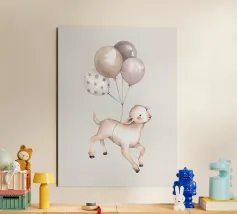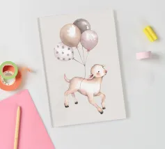 Questo simpatico disegno ad acquerello mostra un allegro agnellino che danza giocosamente nell'aria con palloncini colorati. I tenui colori pastello e i dettagli delicati rendono questo motivo perfetto per la stanza di un bambino o come regalo. Emana gioia, leggerezza e giocosità ed è ideale per murales, cuscini o tazze. Un motivo affascinante che fa battere il cuore di grandi e piccini amanti degli animali e conferisce a ogni stanza un'atmosfera affettuosa e rilassante.