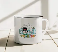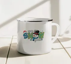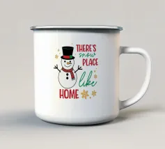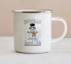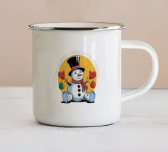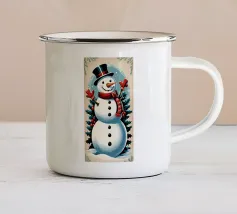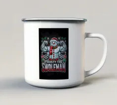 Un allegro pupazzo di neve vestito con cappello a cilindro e sciarpa viaggia su un camion rosso, circondato da fiocchi di neve e alberi sempreverdi. Il testo recita "Ain't No Man Like Snowman" con colori festosi.