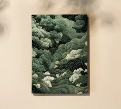 alberi fogliame colline valli fiume piante natura lussureggiante vegetazione paesaggio verde flora foresta cespugli curve morbide crescita linee organiche bellezza naturale serenità tranquillità