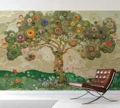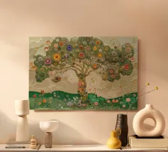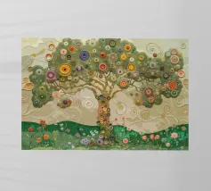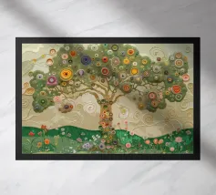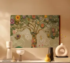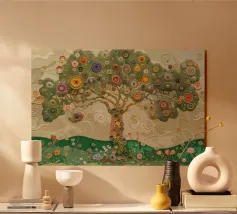 L'albero della vita Art Nouveau combina forme astratte e toni terrosi con accenti floreali per creare una rappresentazione elegante e stimolante della natura. Questo motivo artistico conferisce un tocco artistico a qualsiasi arredamento.