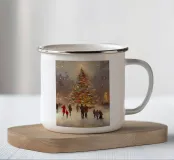 Un magico motivo natalizio con un albero di Natale decorato a festa sulla piazza del mercato, circondato da famiglie e bambini. Le luci calde, le decorazioni colorate e l'atmosfera invernale rendono quest'opera d'arte un classico natalizio senza tempo. Trasmette un senso di sicurezza, nostalgia e gioia festiva. Perfetto come quadro natalizio, poster dell'albero di Natale, stampa artistica delle festività, murale invernale, arte natalizia retrò, decorazione natalizia, idea regalo e decorazione domestica festiva.